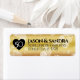 Ajoutez une touche d'élégance à la correspondance de célébrations du 50e anniversaire de mariage d'or avec ces étiquettes d'envoi d'adresses de retour élégants. Des lettres élégantes avec des confettis hexagonaux sur un arrière - plan de feuille d'or ajoutent une touche mémorable à cette occasion spéciale et à ce jalon extraordinaire. Personnalisez avec les noms et l'adresse postale du couple. Design © W.H. Sim. Voir plus sur zazzle.com/expressionsoccasions