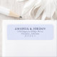 This elegant label features a clean, minimalist design with ample negative space and a soothing light blue background. The typography is sophisticated, using a medium-weight serif font that adds a touch of formality to the layout. Perfect for personalizing wedding stationery or formal invitations, this label offers customizable sections for names, addresses, and ZIP codes, ensuring it can be tailored to any special occasion. Its simple yet refined aesthetic conveys sophistication and clarity, making it ideal for those seeking a timeless and polished look.