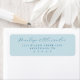 This elegant label features a serene pastel blue background with a minimalist layout, creating a calming and sophisticated atmosphere. The design showcases flowing script typography for the names at the top, paired with clean serif fonts for address details, offering a harmonious blend of formality and accessibility. Perfect for formal occasions, this customizable label is ideal for weddings or special events, providing a refined touch to invitations or keepsakes. Its balanced composition and gentle color palette convey an air of elegance and simplicity, making it a versatile choice for any occasion.