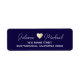 A personalized and elegant dark blue return address label with the image of a sepia-gold heart between the bride and groom names... to add a special touch to your invites.
