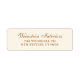 Des étiquettes d'adresse de retour simples avec votre nom d'entreprise dans un élégant script en cuivre et deux lignes de texte pour votre adresse de retour dans une police serif, sur un arrière - plan en ivoire. Ces étiquettes d'adresse de retour sont une excellente façon d'ajouter une touche professionnelle à vos enveloppes.