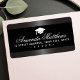 Étiquettes de adresse élégants avec des bordures douces et grises en haut et en bas sur un arrière - plan noir et un capuchon de graduation blanc ou personnalisé. Votre nom est imprimé en blanc dans une police de caractères romantique avec l'adresse ci-dessous. Design élégant et classe.