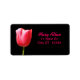 Un élégant étiquette de adresse avec un tableau d'une tulipe de couleur rose unique contre un arrière - plan noir. Prêt à être customisé avec vos informations.