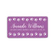 Les étiquettes d'adresse de retour mignonnes avec une bordure d'empreintes de pattes blancs haut et bas sur un arrière - plan violet. Champs de modèle personnalisables pour votre nom et votre adresse.