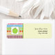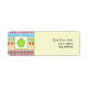 Un étiquette de adresse avec l'illustration d'une pomme verte à l'intérieur d'un carré blanc décrit en vert à gauche. L'Arrière - plan à gauche est des rangées de points multicolores de différentes tailles. Personnalisez le texte à droite.