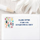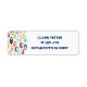 Ces étiquettes d'adresses de retour ont un design moderne du milieu du siècle de lignes horizontales de couleur sur une ligne verticale noire avec des cercles.
