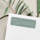 Des étiquettes d'adresse de retour simples et élégantes pour vos invitations de mariage ou la correspondance liée au mariage présentent vos noms dans des lettres de script surdimensionnées avec une tonalité sur le ton du filigrane, et vos coordonnées de retour alignées à droite. Conçu pour coordonner avec notre collection de mariages Script Watermark. Notre colorway Eucalyptus est un élégant mélange de vert poussiéreux, avec des lettres vert pâle et blanc sur un arrière - plan vert sage.