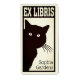 Un design d'Ex Libris avec un chat noir qui regarde autour d'un coin.