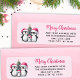 Créez des étiquettes d'adresse de retour Joyeux Noël roses uniques avec une illustration de famille de pingouins mignons près d'un arbre de Noël. Le modèle facilite la saisie de votre adresse.