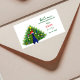 Christmas Return address label features Christmas tree peacock.