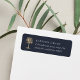 Les étiquettes d'adresse de retour chic en bleu marine riche présentent une illustration de faux palmier doré, ainsi que les détails de votre adresse de retour en lettres blanches classiques.