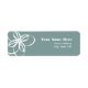 Étiquette de adresse moderne à fleurs avec illustration de fleurs blanches à gauche sur un arrière - plan bleu. Personnalisez le texte blanc. Correspondance d'articles dans la catégorie "Mariages" de la paperie de Jill.