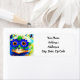 Retourner Adresse Étiquettes représentant la peinture animale de Louis Wain Cat Flower Eyes (1860-1939). Un chat arc-en-ciel grince largement. Des fleurs bleues recouvrent ses yeux. Un cadeau merveilleux pour l'art amoureux des chats et anglais.