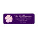 Cette étiquette d'adresse de retour comporte une fleur rose Lavater sur un arrière - plan violet avec le nom dans une jolie police scriptée, et l'adresse dans une belle police de type clair.
