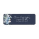Étiquette d'adresse de retour florale bleu foncé et blanc. Les noms sont faits dans un élégant script blanc. Parfait pour ce mariage de printemps, d'été, d'automne ou d'hiver.