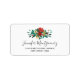 Étiquettes de adresse avec un joli bouquet fleuri aux couleurs rouge, or et vert.