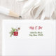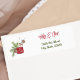Cette étiquette d'adresse de retour de feuillage de vacances a un style d'art populaire nordique, l'illustration d'aquarelle d'une tasse rouge de cacao chaud, de biscuits de Noël de cheval et de flocon de neige, et de branches à feuillage persistant, à côté de votre nom et adresse en texte rouge et vert sur blanc. Parfait pour tous vos courriels, cartes, lettres et forfaits d'hiver. Carte de Noël correspondant disponible.