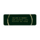 Cette étiquette d'adresse de retour comporte un cadre faux cercle or et une calligraphie simple avec un arrière - plan vert forêt.