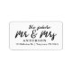 Des étiquettes d'adresse de retour blanches modernes parfaitement élégantes pour le futur M. et Mme dans une police de caractères super. Étiquettes d'adresse de retour parfaites pour les mariages, douches nuptiales ou tout autre envoi avant votre mariage.