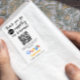 Autocollant moderne et tendance Google Reviews Request. Caractéristiques de design script de typographie branché '' merci de soutenir notre entreprise'' avec votre logo, logo google et code qr avec demande de révision.