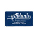 Les étiquettes d'adresse de retour bleu élégant comportent un casquette de grade, votre année de classe, le mot "Graduate" en lettres blanches chic, ainsi que votre nom et adresse. La touche parfaite à vos invitations à l'obtention de votre diplôme, annonces et autres envois. CORRESPONDANCE d'objets dans notre collection.