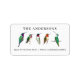 Cute address sticker featuring a hand-painted Calliope hummingbird, a Lucifer and a Rufous and male and female Ruby-throated hummingbird.