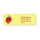 Étiquettes d'adresse personnalisées spéciales pour filles avec un design d'illustration de fraise mignonne en rouge et vert sur un fond de couleur jaune vif personnalisable. Le texte est entièrement personnalisable pour inclure vos propres détails personnels.