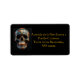 Ajoutez une touche vibrante et artistique à votre courrier avec ces étiquettes de adresse qui présentent un jour tridimensionnel frappant du crâne mort. Le design présente une base noire, richement ornée de motifs floral et de scroll complexes en or métallique, turquoise et cuivre contrastant, incarnant l'esprit de Día de los Muertos. Ces étiquettes disposent d'un texte personnalisable, vous permettant d'ajouter facilement votre adresse de retour ou un message personnalisé sous l'oeuvre captivante du crâne. Faites ressortir votre courrier avec ce design unique et culturellement riche.