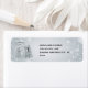 Joy Winter Trees Christmas Retourner l'adresse Étiquettes - Calligraphie tendance - Dans les couleurs bleu argenté, un stand d'art en ligne pins - debout dans une scène de neige faite dans le style bokeh - Joy écrit dans une calligraphie manuscrite