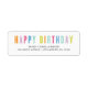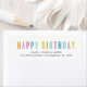 Coloré "Joyeux anniversaire" dans une police en gras avec le nom et l'adresse ci-dessous