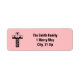 Une belle crèche à l'intérieur de la croix chrétienne. Avec Joseph et Marie, et le bébé Jésus dans une crèche avec l'étoile de Bethléem & Ange ci-dessus. Arrière - plan rose tendance avec silhouette et typographie noire. #Noël #nativité #rose #cross #Jesus #Jesus
