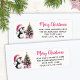 Ces étiquettes d'adresse de retour de Noël rose élégante comportent le "Joyeux Noël" en caractères décontractés roses et un mignon manchot dans un chapeau de Père Noël rose décorant l'arbre de Noël. Le modèle vous permet de taper facilement votre adresse avant de commander. Ce design est sur un arrière - plan blanc.