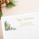 Cette élégante étiquette d'adresse de retour de Noël est décorée avec du feuillage aquarelle et des baies en rouge, vert et or. Il dit Joyeux Noël dans une élégante typographie de script. Facile à personnaliser. Parce que nous créons notre oeuvre, vous ne trouverez pas cette image exacte d'autres designers. Aquarelle originale © Michele Davies.
