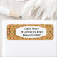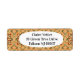 Cette adresse de retour marque un design géométrique de carrés manipulés en orange, marron, tons verts sur un champ de crème.