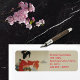 Femme japonaise vintage en kimono rouge. Étiquette d'adresse de retour à l'orientale.