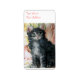 Un adorable chaton noir gris contre la pêche, des fleurs blanches, roses et jaunes avec votre nom et adresse en script rose. il y a des enveloppes assorties, des cartes de notes, des cartes postales et un tee - shirt de filles. peut aussi être utilisé comme une étiquette cadeau.