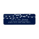 Simple mais élégant, les lampes à cordes de la collection de mariages bleu marine est un design étonnant avec de belles lumières à cordes blanches suspendues sur un arrière - plan bleu marine, qui est parfait pour toute célébration mariage moderne. Ces étiquettes peuvent être personnalisés pour votre occasion spéciale et feraient le étiquette parfait pour votre mariage, douche nuptiale, fête de fiançailles, fête d'anniversaire et bien d'autres occasions spéciales. Ajoutez votre libellé personnalisé à cette conception à l'aide des cases "Modifier ce modèle de conception" situées à droite de l'élément, ou cliquez sur le bouton bleu "Customiser" pour arranger le texte, modifier les polices et les couleurs et ajouter des informations ou des images supplémentaires à cette conception.