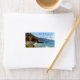 Étiquettes d'adresse de retour sur la plage et la scène océanique. Les falaises rencontrent la mer bleue le long de la côte californienne.