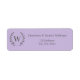 Lavender colored background. Decorated with a warm gray wreath. Personalize and add your name, address and family monogram initial. Warm gray colored text.