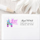 Étiquette d'adresse de retour pour une fête de patinage à rouleaux avec une ambiance vintage. Il y a une illustration dessinée à la main d'un patinage à rouleaux de couleurs rose et bleue avec une fausse parties scintillant d'or en forme de foudre imprimé dessus. Le texte dit : "Roulons !" Customisez ce produit en ajoutant le nom et l'adresse de votre enfant et utilisez-le lors de l'envoi des cartes d'invitation, etc.