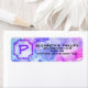 Ce étiquette présente une aquarelle pastel de bleu, de violet et de rose avec un substituant pour un monogramme de lettre initiale. L'information du modèle se trouve du côté droit du étiquette. Remplissez les champs de texte modèle et la lettre initiale avec vos informations.