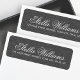 Élégantes étiquettes d'adresse de retour avec votre nom dans une police de script de calligraphie élégante et l'adresse ci-dessous sur un arrière - plan de lin gris foncé IMPRIMÉ.