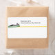 Le chat gris (bleu russe) est posé sur un ver vert. Personnalisez avec vos informations commerciales ci-dessus. Exécutez le étiquette via votre imprimante pour obtenir des adresses client.