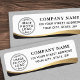 Le logo personnalisé renvoie des étiquettes d'adresse avec un dégradé de couleur noir et or (imprimé, pas de papier peint), une bordure incurvée et des champs de modèle pour le nom et l'adresse de votre entreprise.