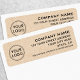 Le logo personnalisé renvoie des étiquettes d'adresse avec votre logo personnalisé et cinq lignes de texte sur un arrière - plan en papier Kraft marron clair (image imprimée).