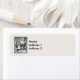 Ces étiquettes d'adresse de retour personnalisées sont blanches avec une illustration vintage en noir et blanc d'une petite hotte rouge dans la forêt sous les arbres qui parle au loup dans un cadre noir orné. Customisez votre nom et votre adresse avec le modèle.