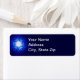 Une simple image fractale aux tons bleus d'une Étoile de David. Le même design se retrouve sur les invitations et les cartes.