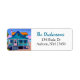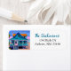 Magnifique mais biscornue maison de vacances en cottage de plage bleu avec terrasse et océan tropical générée l'art étiquettes d'adresse de retour.