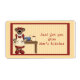 Un mignon étiquette à ajouter à vos goodies maison met en vedette un ours maman dans sa cuisine avec des articles de boulangerie sur arrière - plan rayé jaune et bordure rouge grange. Créé avec graphisme by©http://www.countrylifegraphics.com