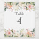 étiquette mariage avec numéro de table.Aquarelle rose roses, fleurs et verdure.